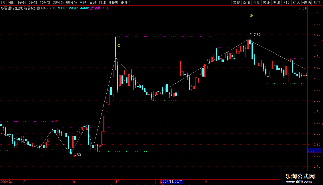 波浪顶:IF(T1,A,A),COLORFF00FF,POINTDOT,LINETHICK2;