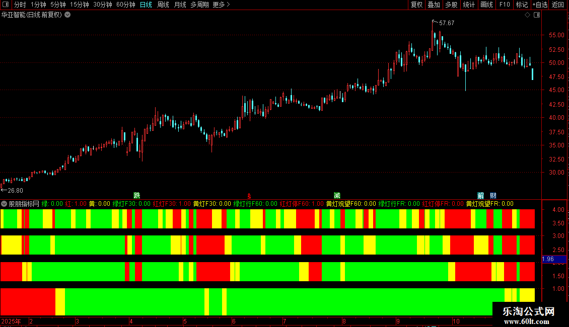 黄灯观望F60:C>=F60B AND C<=F60A,COLORYELLOW;
