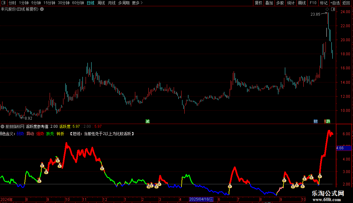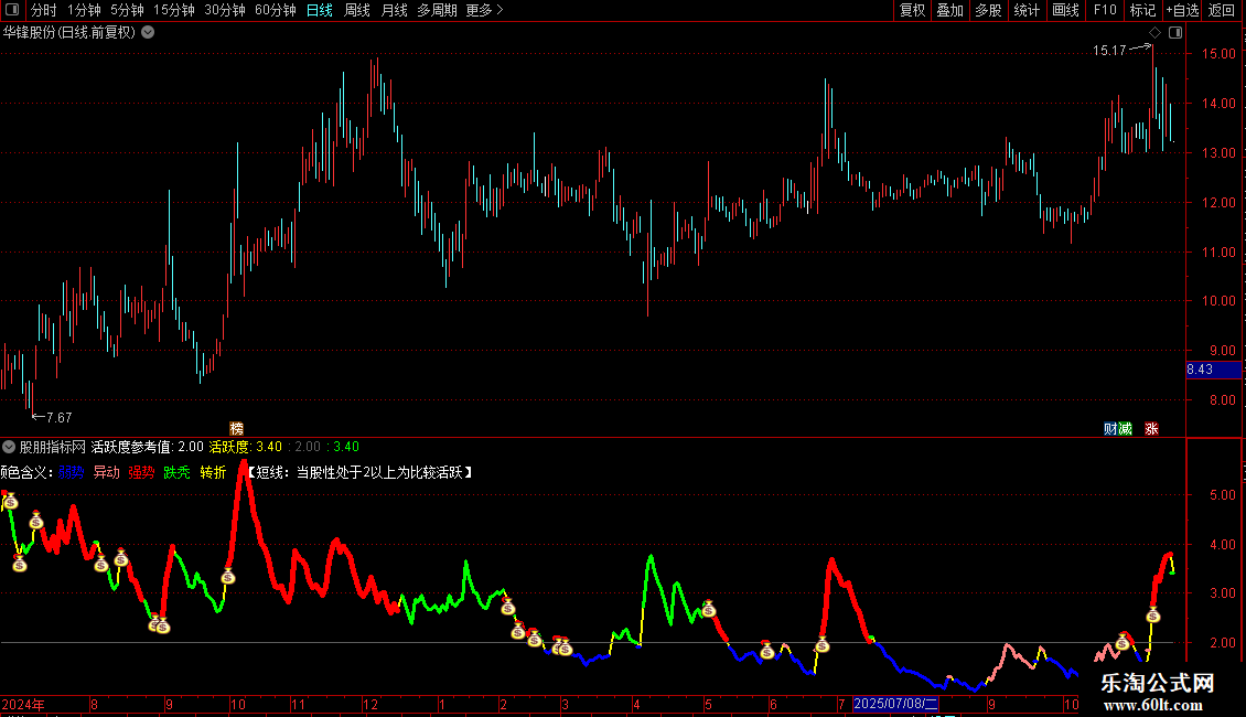 DRAWTEXT_FIX(1,0.4,0.02,1,'【短线:当股性处于2以上为比较活跃】'),COLORWHITE;