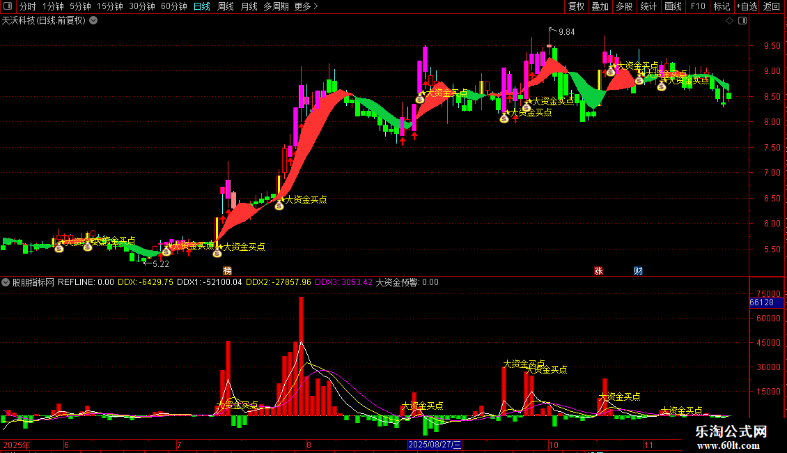 DRAWTEXT(大资金预警,DDX*1.06,'大资金买点'),LINETHICK3,COLOR00FFFF;
