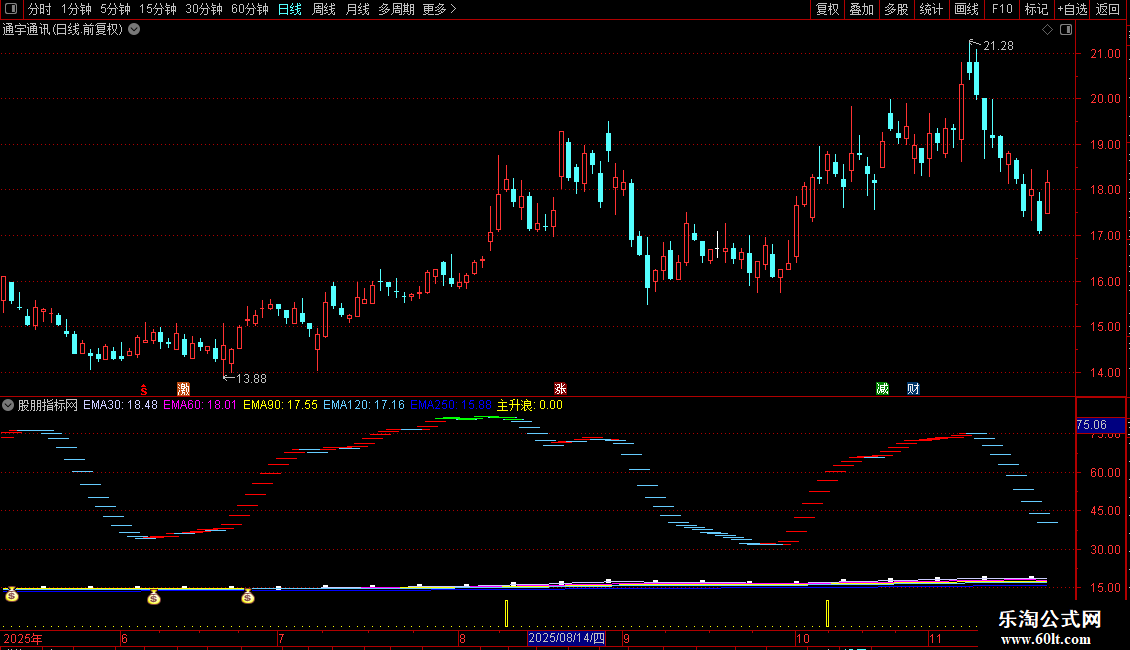 G3:=EMA120-EMA60<220/1000 AND EMA120-EMA90<320/1000 AND EMA120-EMA250<420/1000;
