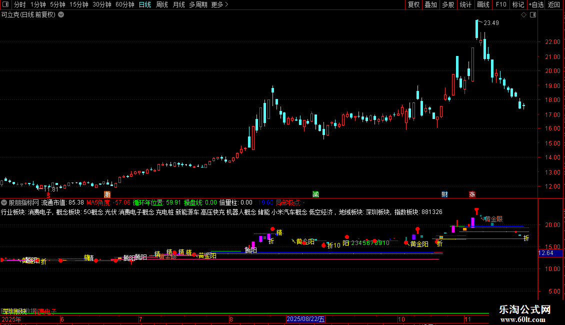 局部极点:IF(极点保留=-1,L,IF(极点保留=1,H,DRAWNULL)),CIRCLEDOT,{2.红色 }COLORRED,LINETHICK3;
