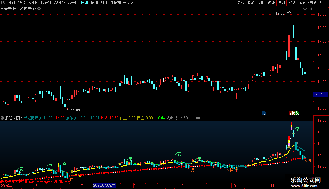 IF(短循环线>REF(短循环线,1),短循环线,DRAWNULL),COLORRED,DOTLINE;