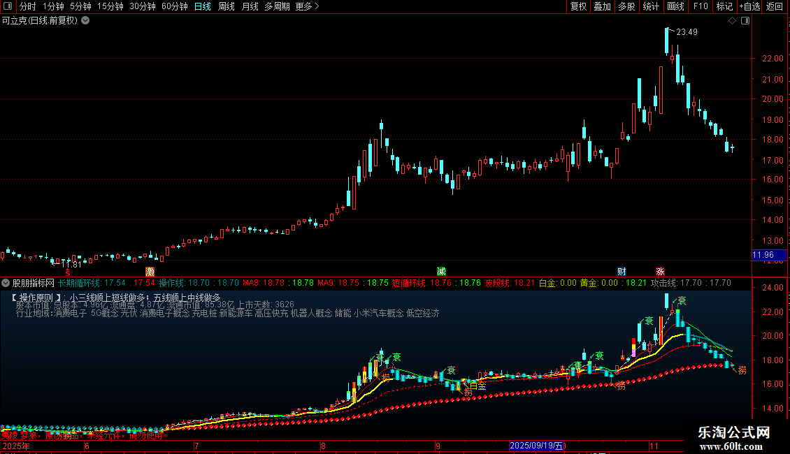 IF(长期循环线>REF(长期循环线,1),长期循环线,DRAWNULL),COLORRED,LINETHICK1,CIRCLEDOT;