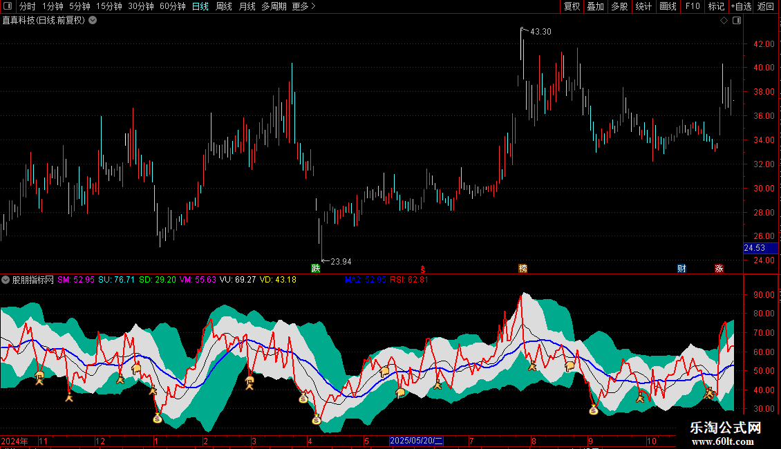长短5倍:=DRAWTEXT(长期/短期>5,(50),'5'),COLORFFFF00;