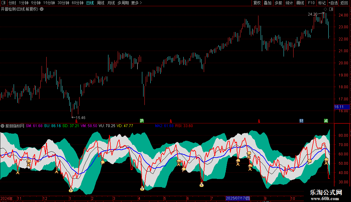 单针二十:=DRAWTEXT(短期<20 AND 长期>55,(80),'2'),COLORFFFF00;