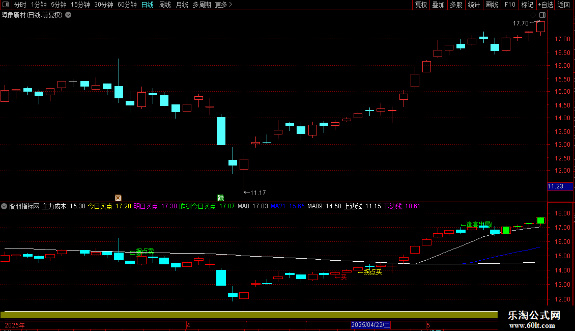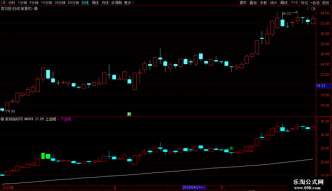 DRAWTEXT(CROSS(买线,卖线),LOW*1.00,'←买'),COLORRED,LINETHICK2;