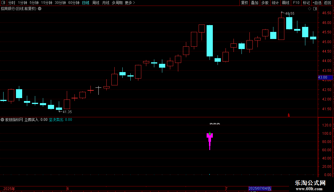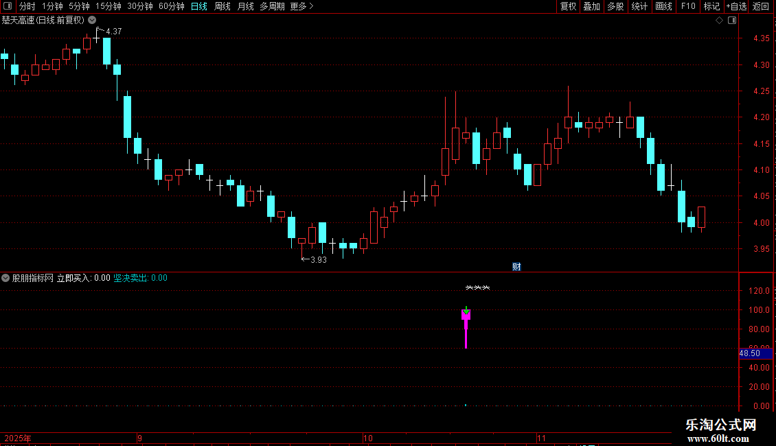 指标通过识别短期价格低点共振与强势突破信号产生买入提示,同时利用动量超买指标捕捉卖出时机。操作策略为:当出现短期底部确认且价格强势上攻时立即买入;当动能指标从高位回落时坚决卖出。