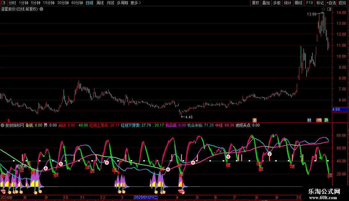 IF(机会来临>=REF(机会来临,1),机会来临,DRAWNULL),COLORCC33CC,LINETHICK2;