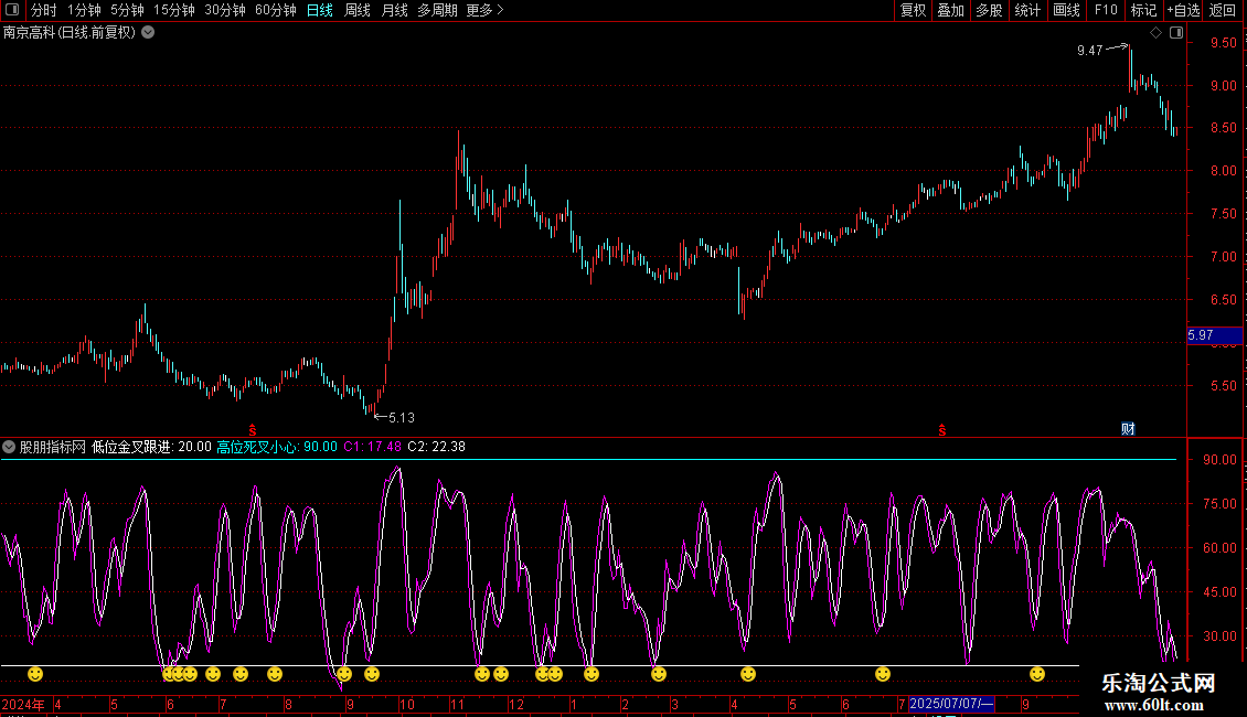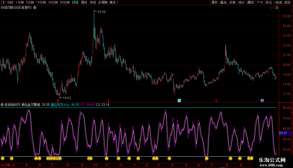 C1:(EMA((((VAR2-VAR4)/(VAR5-VAR4))*100),4)*VAR1),COLORFF00FF;