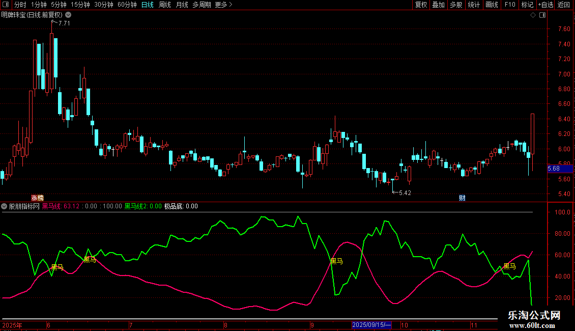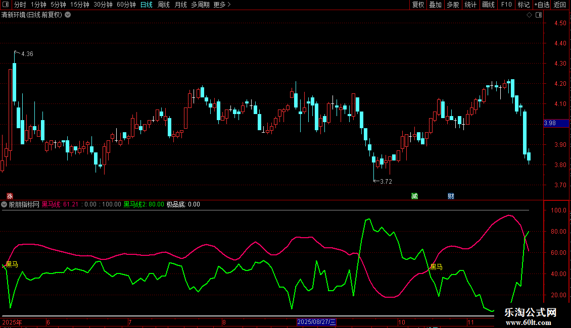 黑马线:EMA(VAR11,5), LINETHICK2,COLOR6600FF;