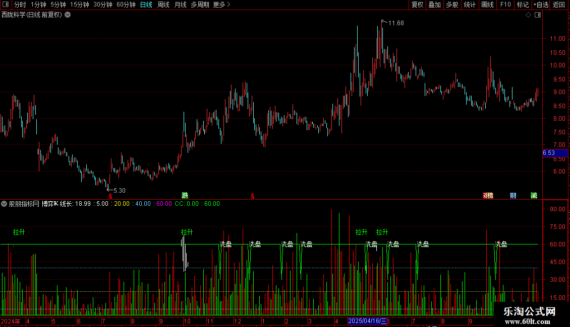 博弈K线长:MAX(ABS(收-开),ABS(收-REF(收,1))),POINTDOT,COLORWHITE{FF00FF};