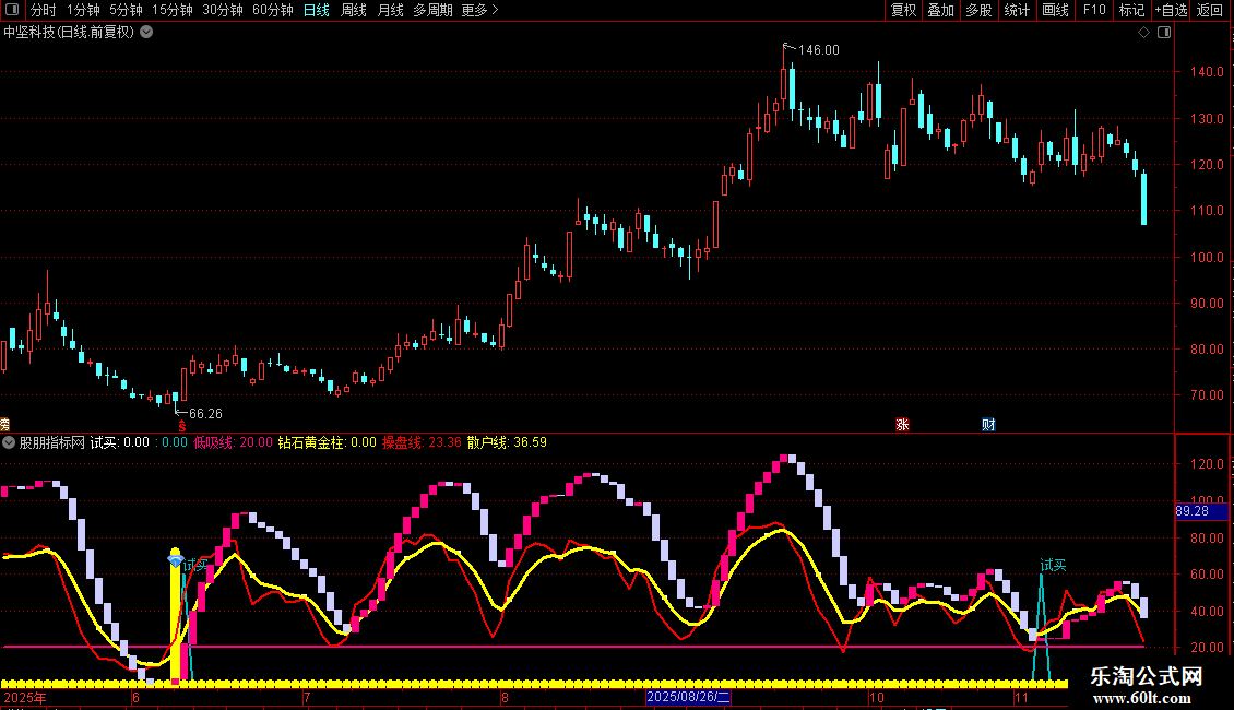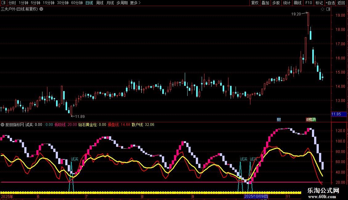 散户线:SMA(操盘线,3,1),LINETHICK3,COLORYELLOW;