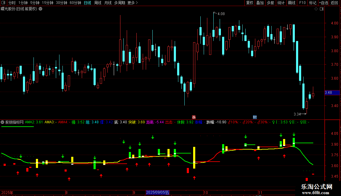 ♂10%:IF(H>=出击*1.1,出击*1.1,DRAWNULL),COLORRED,POINTDOT;