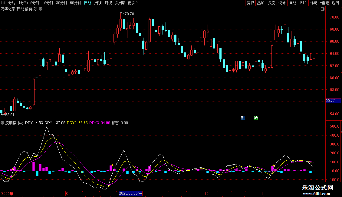 预警:DDY>0 AND CROSS(DDY1,DDY2) AND DDY1<0,LINETHICK;