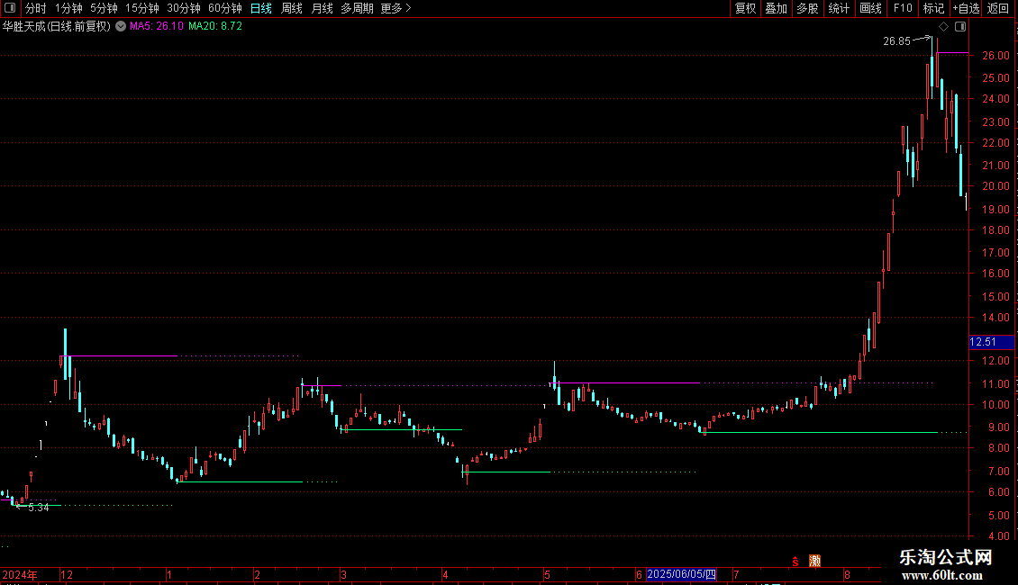 【实战价值】在主图叠加显示波峰波谷双轨线,帮助交易者快速识别:1.上升趋势中的回调支撑位(波谷)2.下降趋势中的反弹压力位(波峰)3.箱体震荡的边界锚点。特别适合短线波段操作,当价格突破最近波峰/波谷时,可辅助判断趋势延续或反转信号。