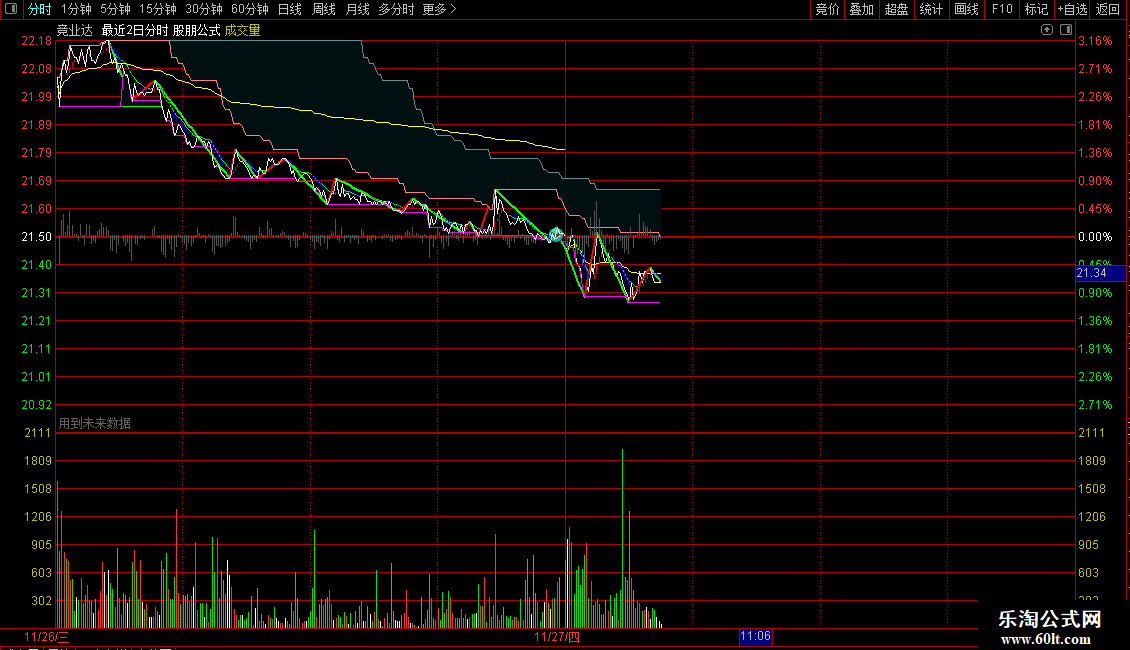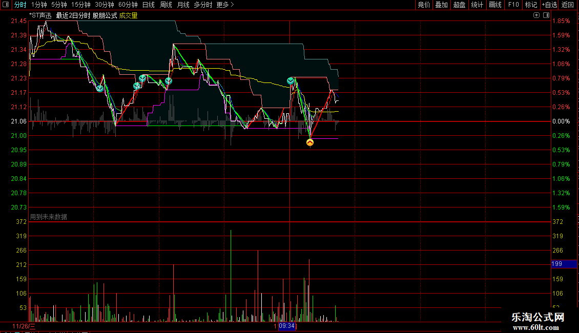 指标通过多条均线组合识别趋势方向,在价格高低点间绘制支撑阻力线,结合长短期高低点通道判断买卖时机。操作策略为:当短期均线上穿长期均线且价格突破通道上轨时买入,下穿且跌破下轨时卖出,同时监控超买超卖信号。