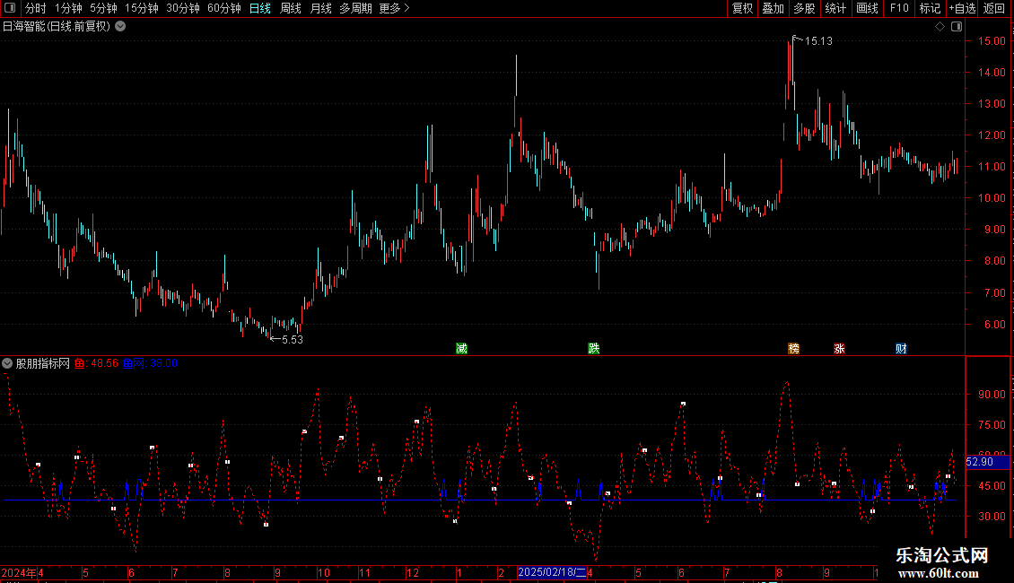 鱼网:IF((CROSS(RSI2,RSI4) OR CROSS(RSI2,A3) AND A3<好线 AND RSI1<平线),48,38),COLORBLUE,LINETHICK1;