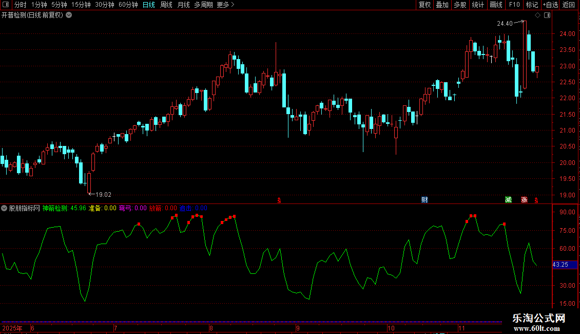 逢高派发: STICKLINE(神箭检测>80,神箭检测+1,神箭检测-1,1.5,0), COLORRED;