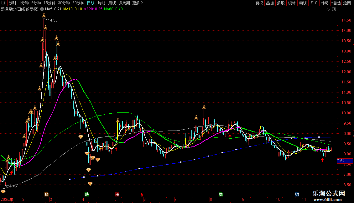IF(MA25<REF(MA25,1),MA25,DRAWNULL),COLORGREEN, LINETHICK2;