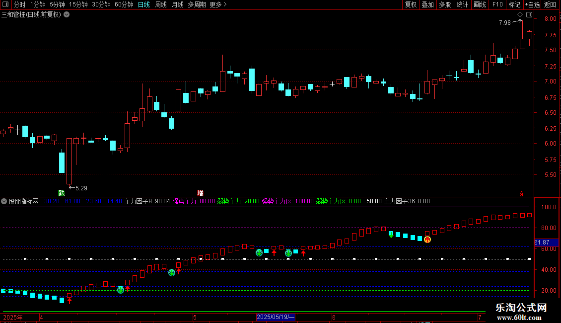 指标通过计算价格在特定周期内的相对位置来判断主力资金动向。核心功能是识别主力控盘状态转换的关键节点,当指标从弱势区突破至强势区时产生买入信号,从强势区回落至弱势区时提示风险。