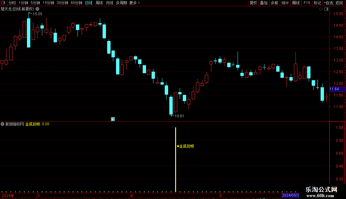 操作策略:当系统出现"金底封喉"黄色信号柱时,表明股票可能结束长期下跌,开始强势反弹,是较为明确的买入时机。
