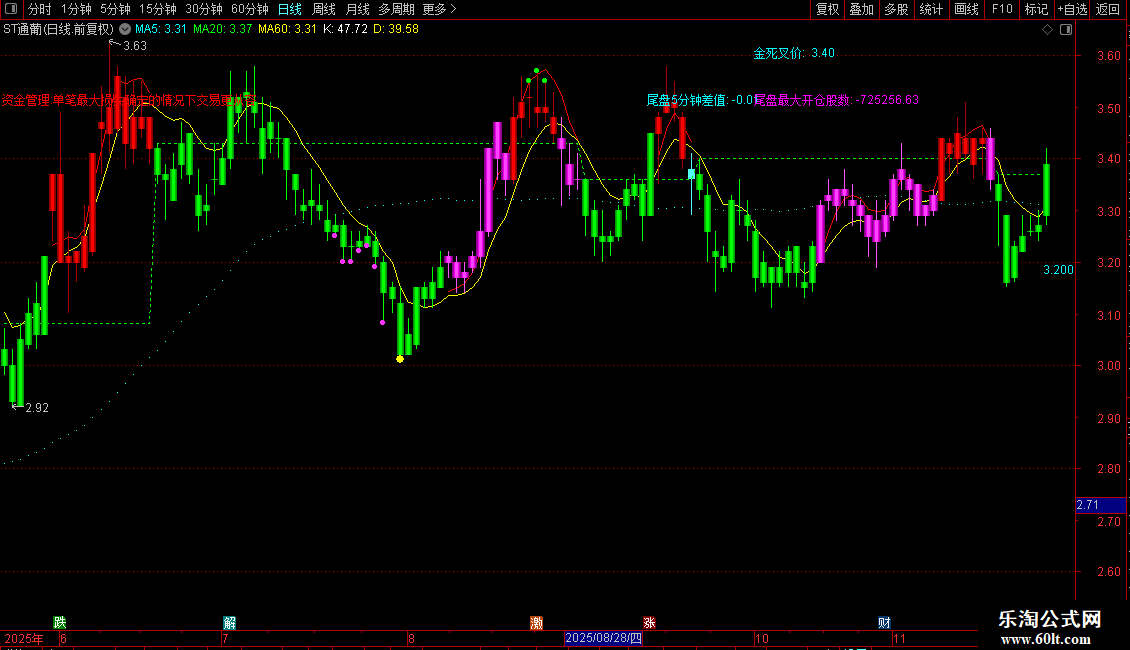 DRAWTEXT_FIX(1,0.7,0.09,0,STRCAT('尾盘最大开仓股数: ',CON2STR(尾盘开仓,2))),COLORMAGENTA;