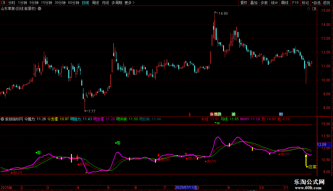 支撑:MA(REF(LLV(C,30),1),2),COLORBLACK;