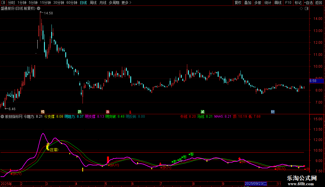 ACC:=E+(HIGH-LOW),NODRAW;ADD:=E-(HIGH-LOW),NODRAW;今阻力:REF(AAA,1),COLORWHITE,NODRAW;