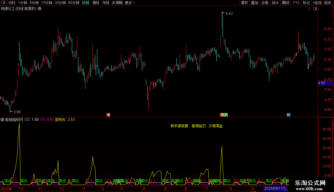 DRAWTEXT_FIX(ISLASTBAR,0.70,0.01,1,'和平鸽祝君: 股海拾贝 沙海淘金'),COLORYELLOW;