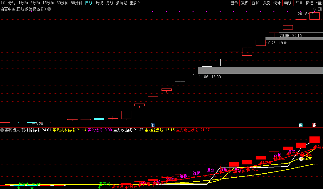 通达信『游资筹码点火』副图指标非常完整的三合一成本分布系统与游资监控模型源码