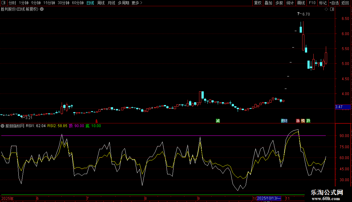 RSI2:SMA(MAX(CLOSE-LC,0),N2,1)/SMA(ABS(CLOSE-LC),N2,1)*100;