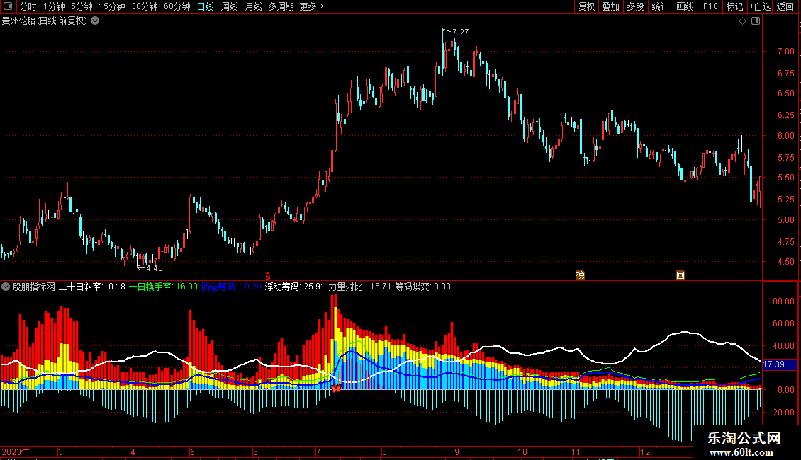 输出力量对比:锁定筹码-浮动筹码,COLORSTICK