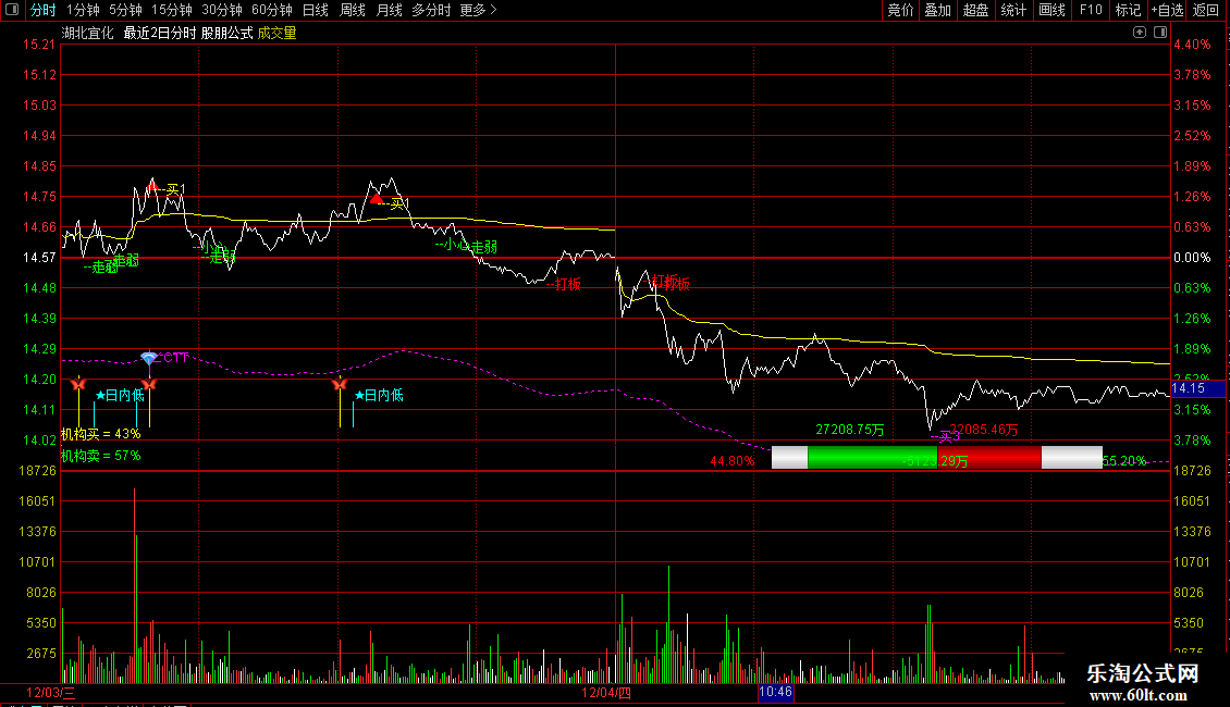 分时均价线:=SUM(C*V,240)/SUM(V,240),DOTLINE,COLORFFFFFF,LINETHICK1;