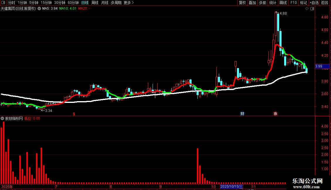 低位:IF(资金介入>0,资金介入*0.2,0),STICK,,LINETHICK5,COLORRED;