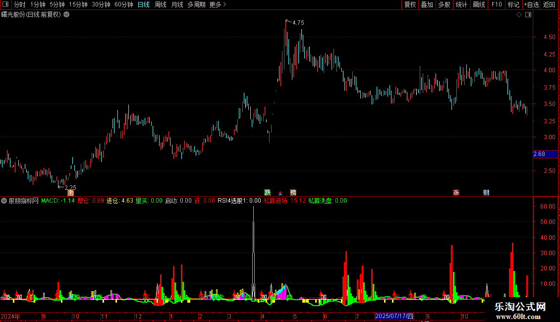 洗盘:=IF(VAR11A>REF(VAR11A,1),VAR11A*8,0),COLORFFF810,LINETHICK0;