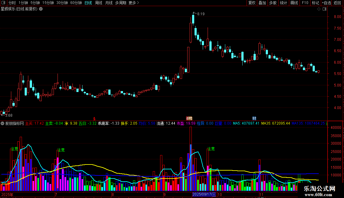 输出怪异:收盘价=收盘价 AND 换手>=25,COLORFF6600