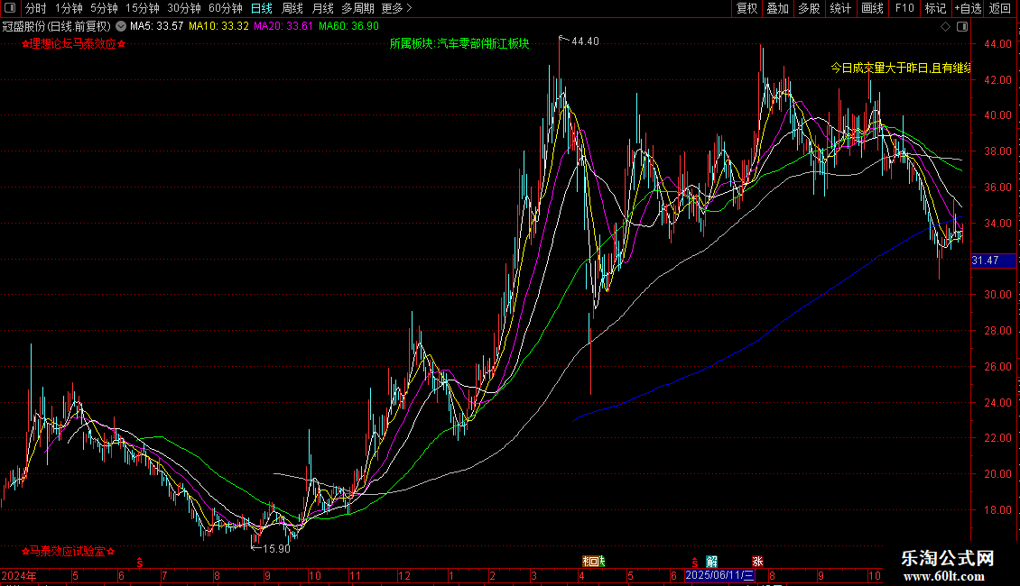 DRAWTEXT(T37=1 AND CURRBARSCOUNT=58,AAA-(AAA*TS37),'今日成交量大于昨日,且有继续增大趋势'),COLORYELLOW ;