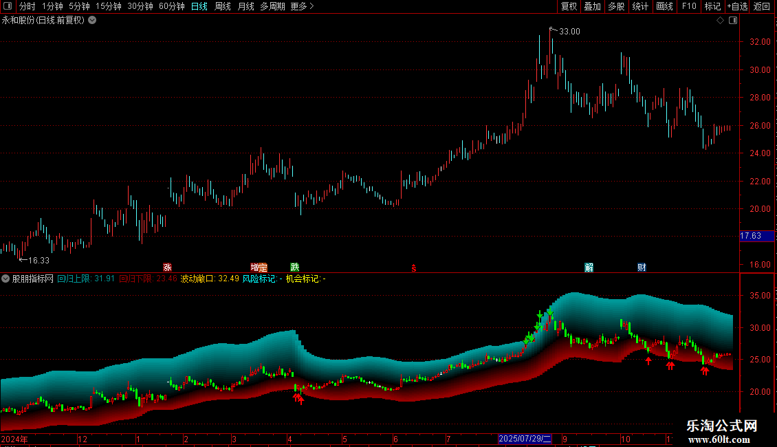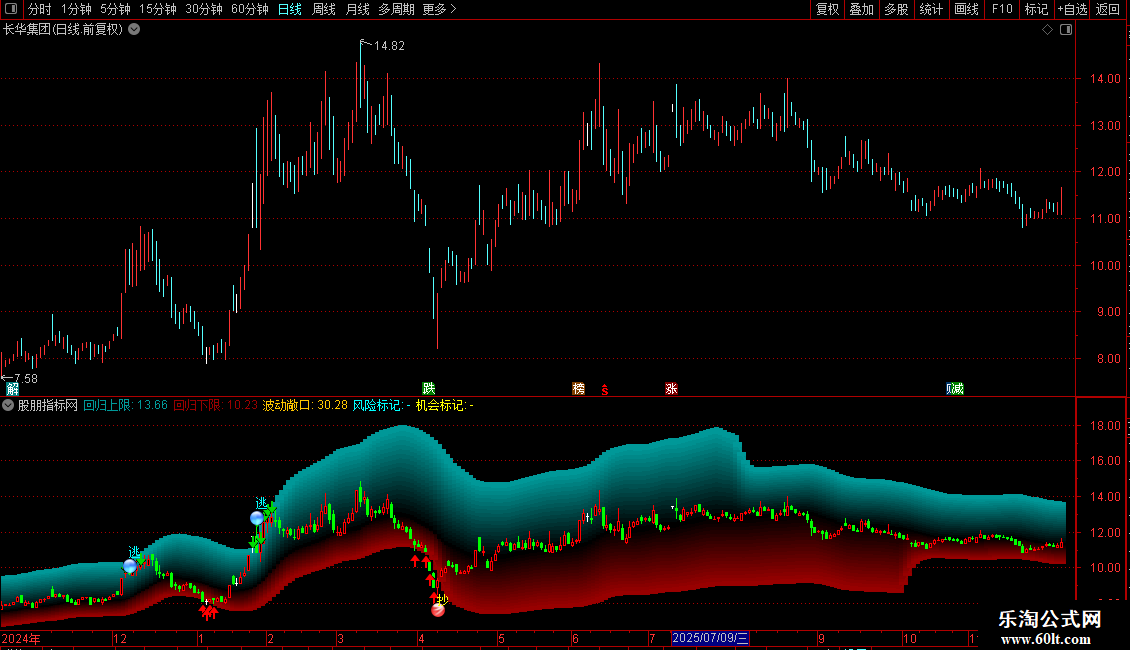 回归上限:IFF(绘图范围,天线,DRAWNULL),COLOR989800,LINETHICK2;