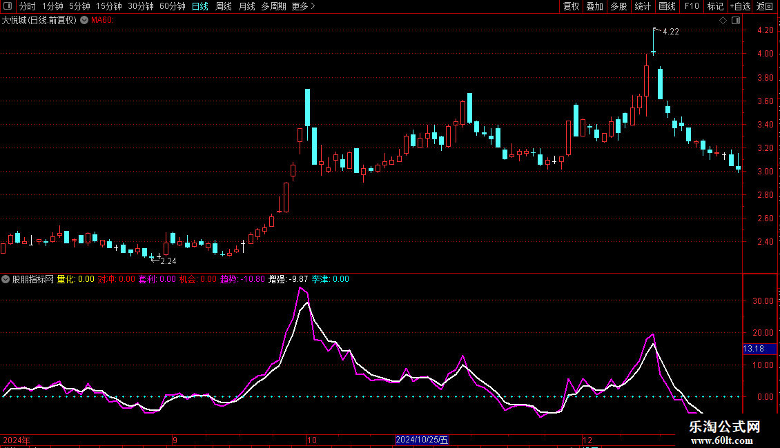 趋势:(CLOSE-MA(CLOSE,21))/MA(CLOSE,21)*100,COLORMAGENTA,LINETHICK2;