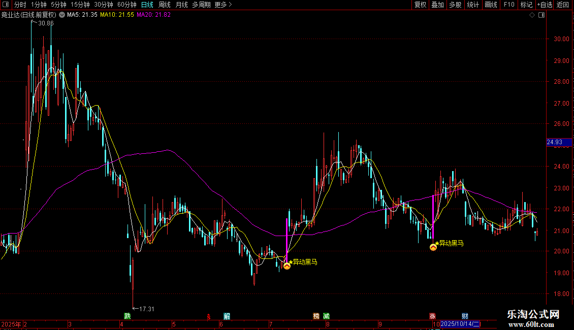 DRAWTEXT(异动黑马,LOW,' ★异动黑马'),COLOR00FFFF;