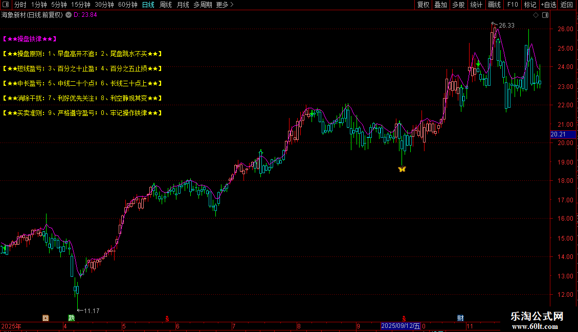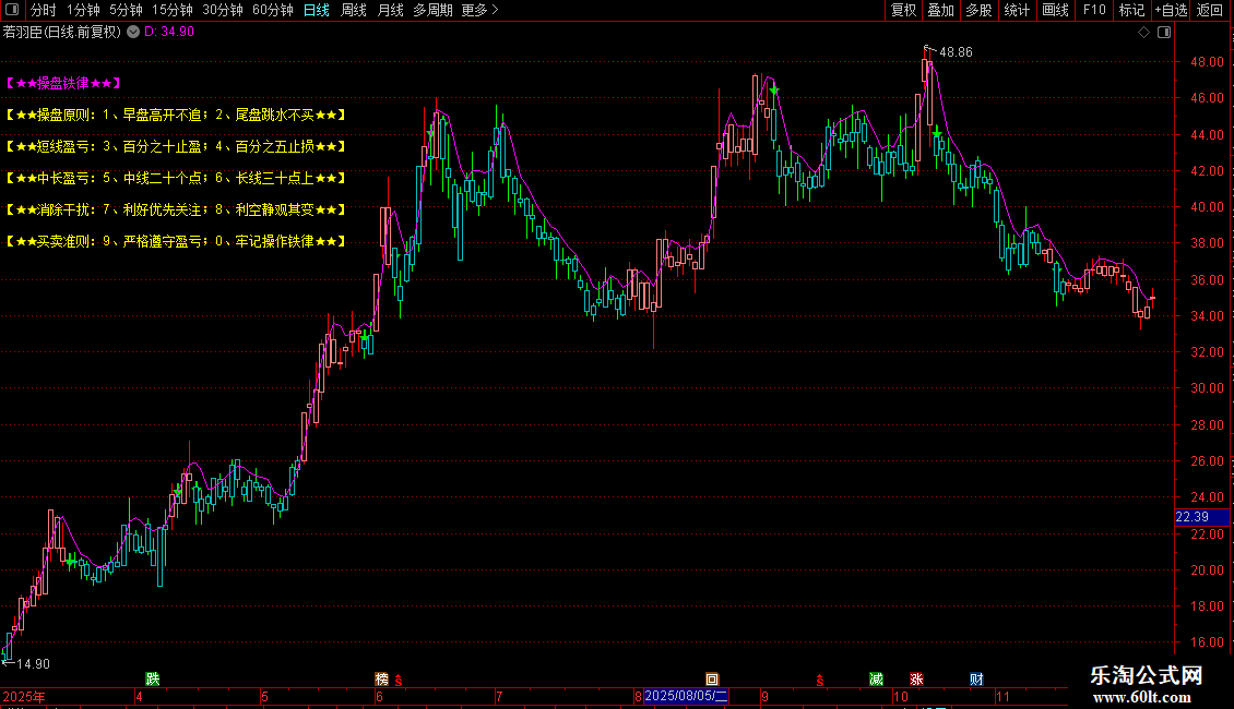 DRAWTEXT_FIX(1,0.00,0.05,0,'【★★操盘铁律★★】'),COLORMAGENTA;
