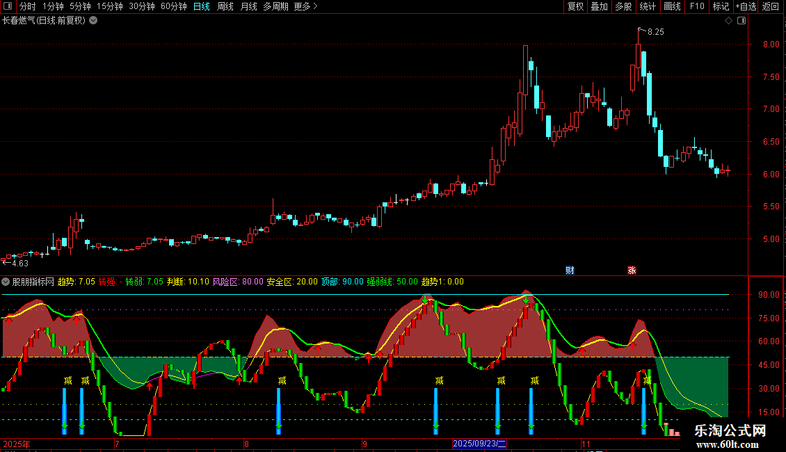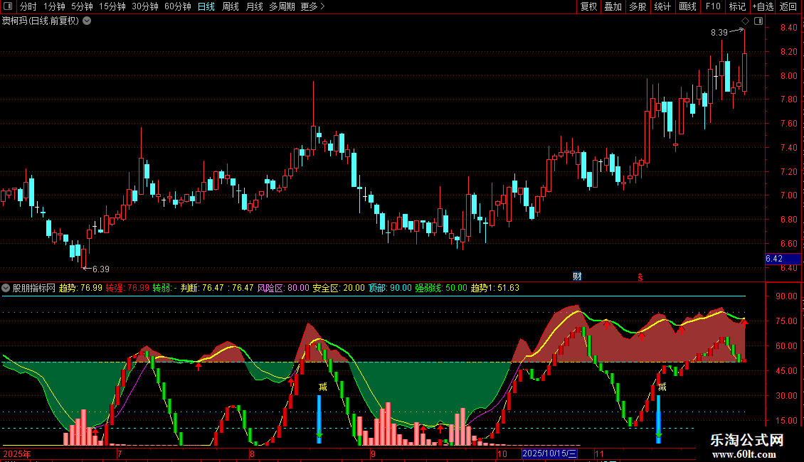转弱:IF(趋势<50,趋势,DRAWNULL),COLORGREEN;