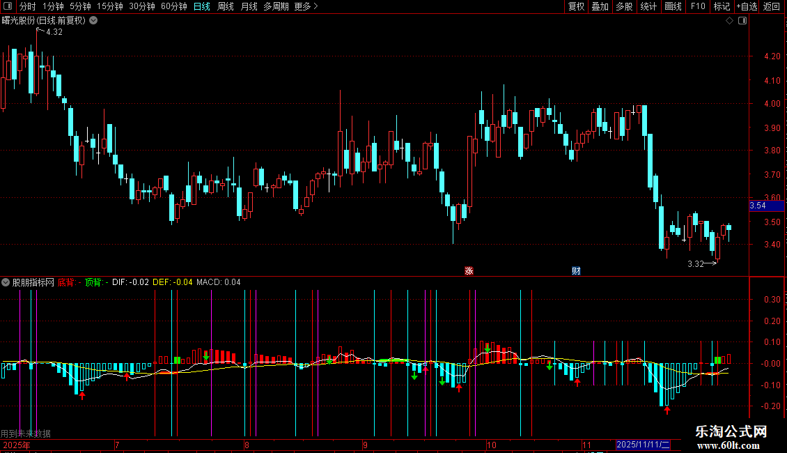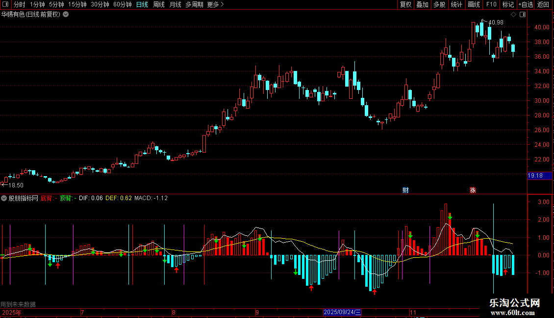 底背离:=REF(CLOSE,A1+1)>CLOSE AND DIFF>REF(DIFF,A1+1) AND CROSS(DIFF,DEA);