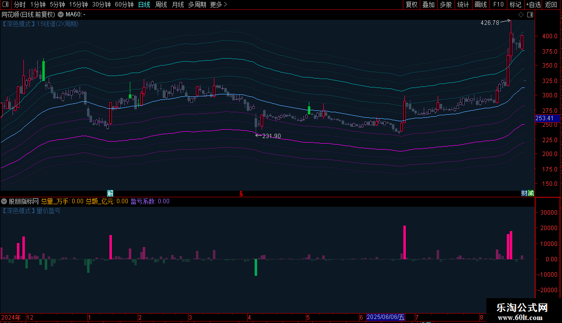 通达信千里波涛15线谱主图+江河横溢资金盈亏副图源码
