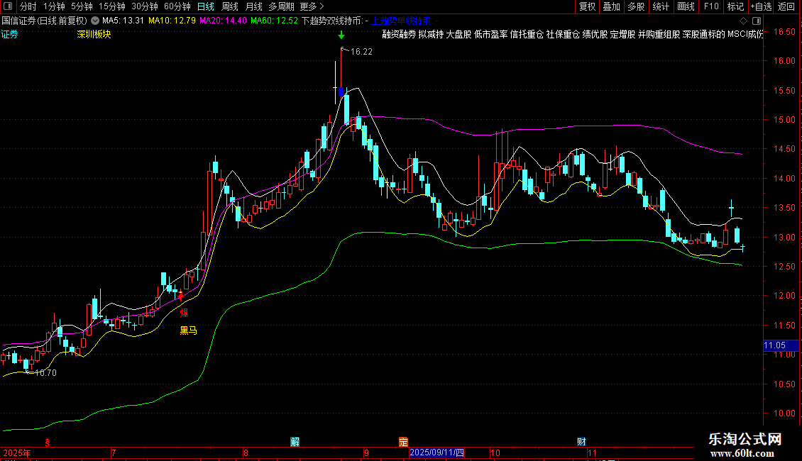 低点:IF(CURRBARSCOUNT<=60, CONST(IF(ISLASTBAR=1,LLV(L, BARSLAST(CURRBARSCOUNT=60)),1)),DRAWNULL),COLORMAGENTA,DOTLINE;