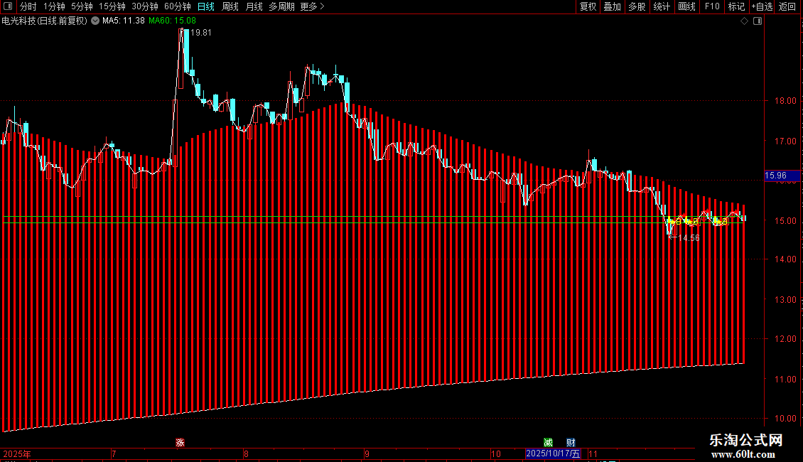 AA1赋值:上次MA60>MA20AND(MA20=MA10ORMA20>MA10)距今天数