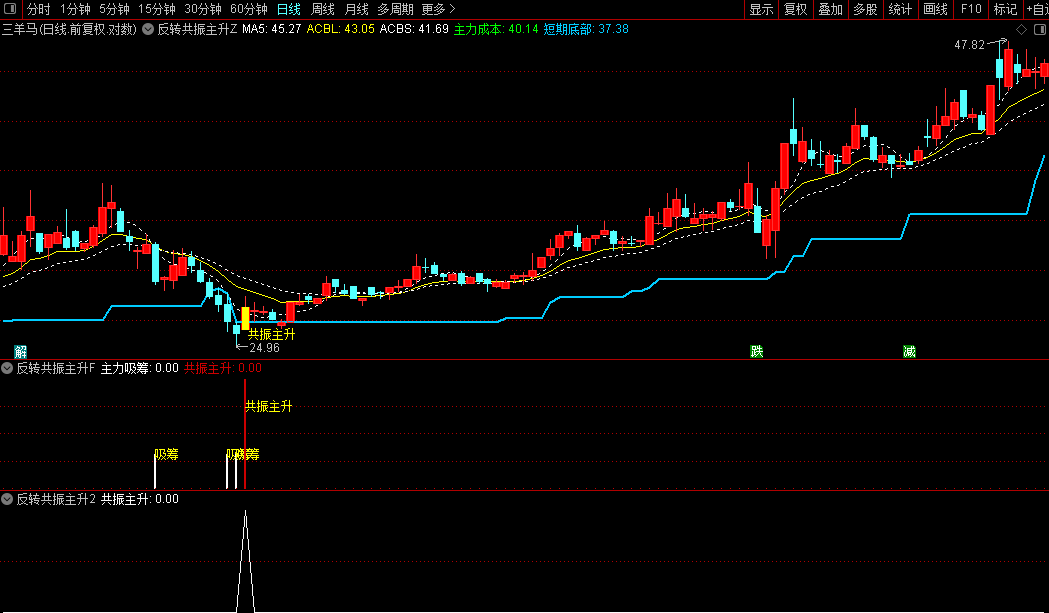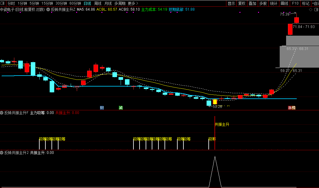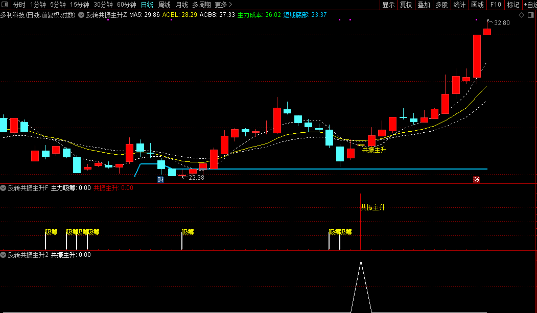通达信【反转共振主升】主图/选股筛选短线趋势由弱转强主升浪启动的个股源码