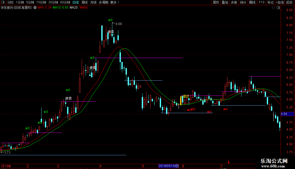 DRAWTEXT(CROSS(82,VAR0),HIGH,'快卖'),COLORWHITE;