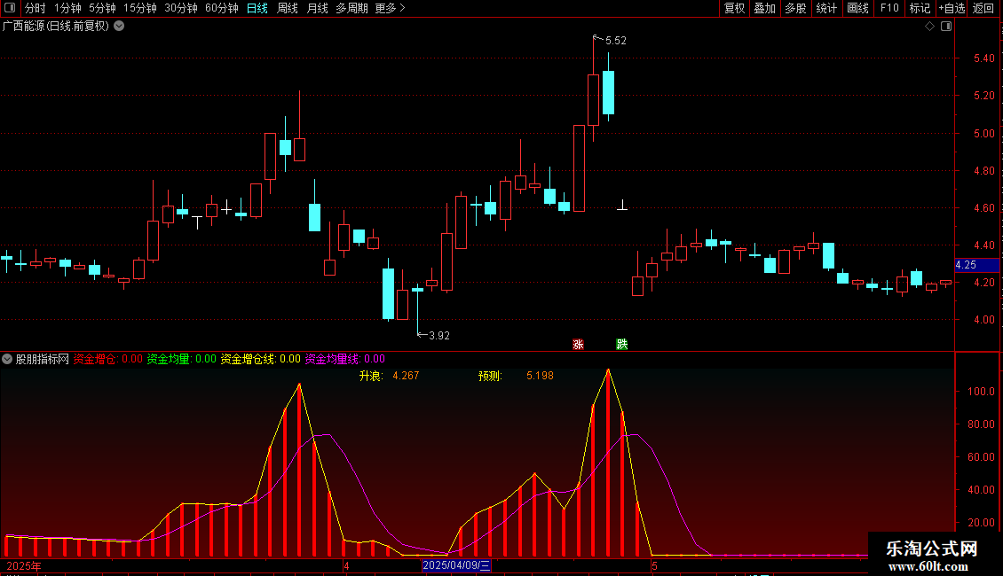 资金均量线:MA(DC,5),COLORMAGENTA;